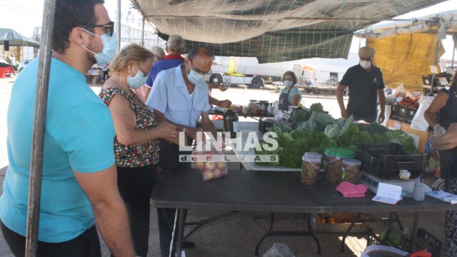 O mercado quinzenal no Parque da Piedade, em Elvas, voltou a realizar-se segunda-feira, dia 10, depois de ter estado vários meses suspenso devido à pandemia de Covid-19.