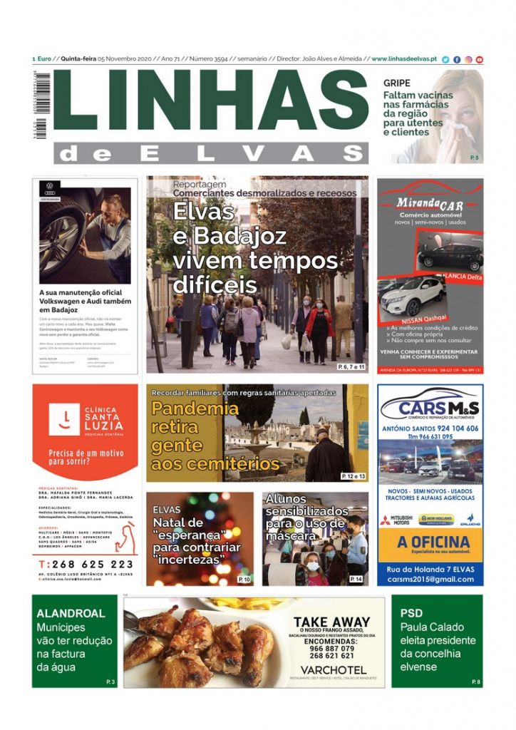 Conheça os títulos da edição de hoje do semanário Linhas de Elvas. Outros temas para ler nas páginas impressas.