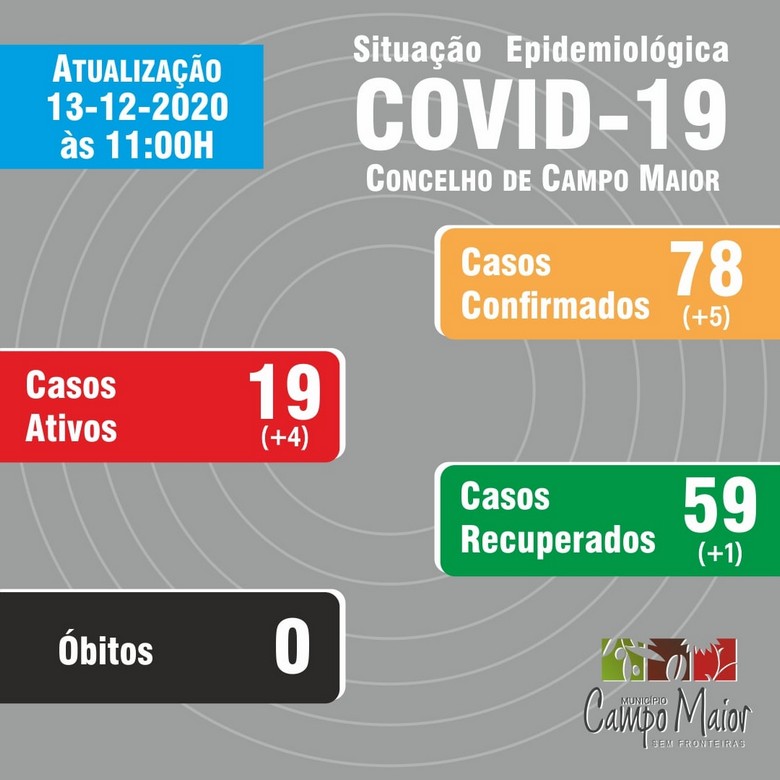 O concelho de Campo Maior registou cinco novos casos de covid-19, nas últimas 24 horas, de acordo com dados atualizados das autoridades de saúde divulgadas pelo município.