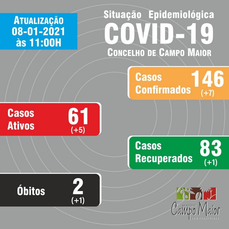 O concelho de Campo Maior registou, nas últimas 24 horas, sete novos casos de pessoas infectadas com Covid-19, assim como mais uma recuperação e um óbito por coronavírus.