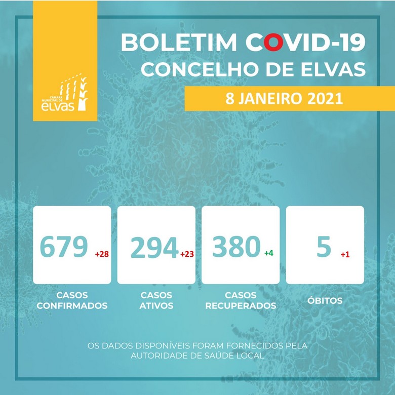 O concelho de Elvas registou, nas últimas 24 horas, um óbito e 28 novos casos de pessoas infectadas com o coronavírus SARS-CoV-2, responsável pela doença covid-19.