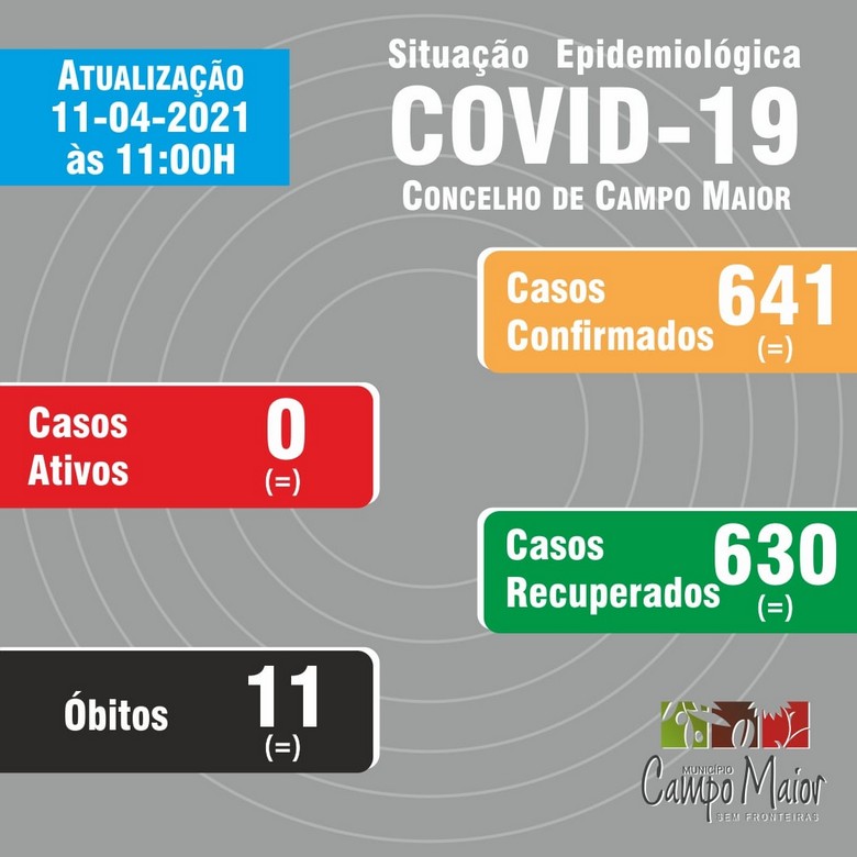 O número de casos positivos confirmados desde o início da pandemia continua, por isso, nos 641, sendo que 630 já recuperaram. Até ao dia de hoje foram também contabilizadas 11 mortes.