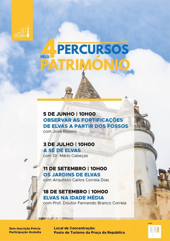Os restantes “Percursos pelo Património” estão marcados para 3 de Julho (“A Sé de Elvas”, com Mário Cabeças), 11 de Setembro (“Os Jardins de Elvas”, com Carlos Correia Dias) e 18 de Setembro (“Elvas na Idade Média”, com Fernando Branco Correia).