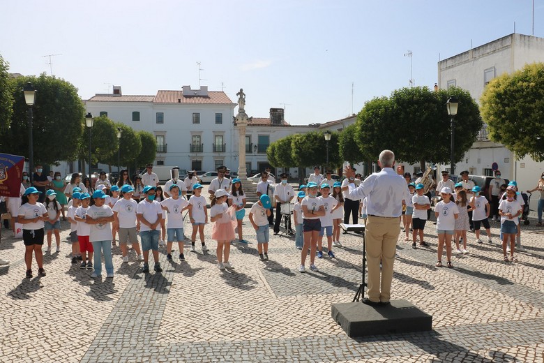 Quatro temas, entre os quais o hino nacional “A Portuguesa”, foram interpretados hoje pela Banda Filarmónica 1.º de Dezembro, de Campo Maior, na Praça da República da localidade.