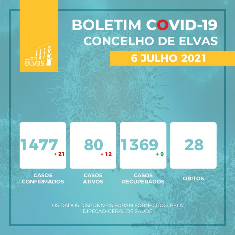 Segundo os dados divulgados hoje pelo município alentejano, o concelho de Elvas contabiliza 1.477 casos confirmados de covid-19 desde o início da pandemia, 1.369 pessoas curadas e 28 óbitos.