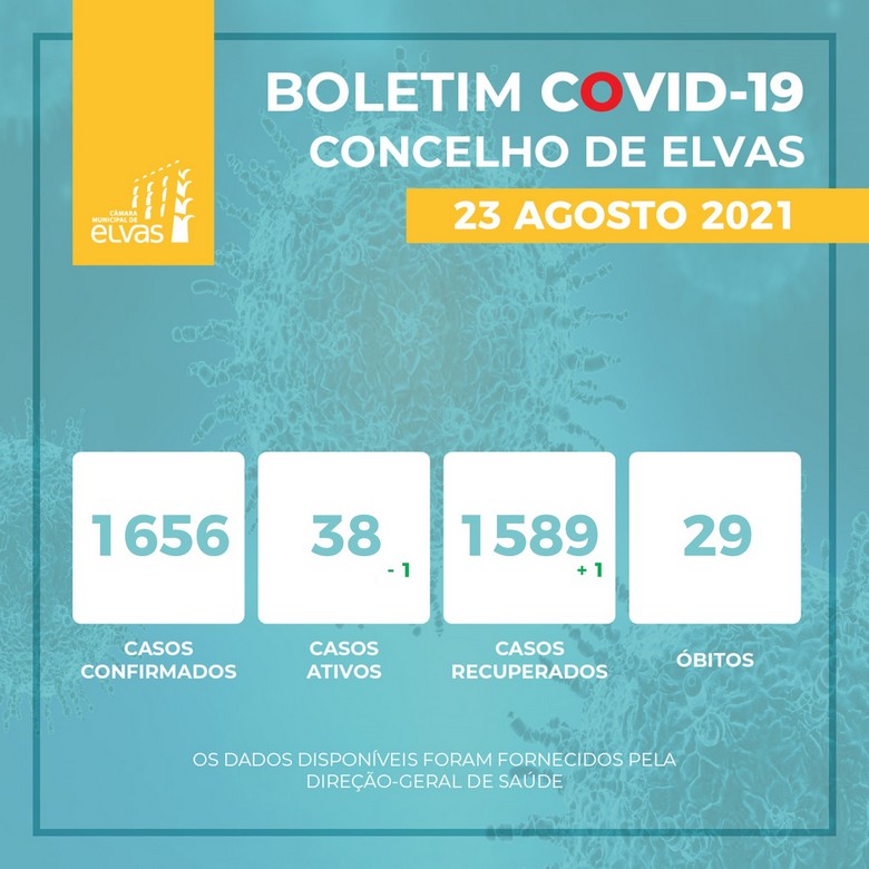 Segundo os dados divulgados hoje pelo município alentejano, o concelho de Elvas contabiliza 1.656 casos confirmados de covid-19 desde o início da pandemia, 1.589 pessoas curadas e 29 óbitos.