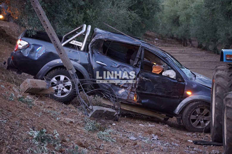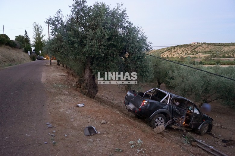 O alerta para o acidente foi dado às 19:27h. A viatura ao sair da estrada só se imobilizou num olival, arrastando consigo um poste de betão.