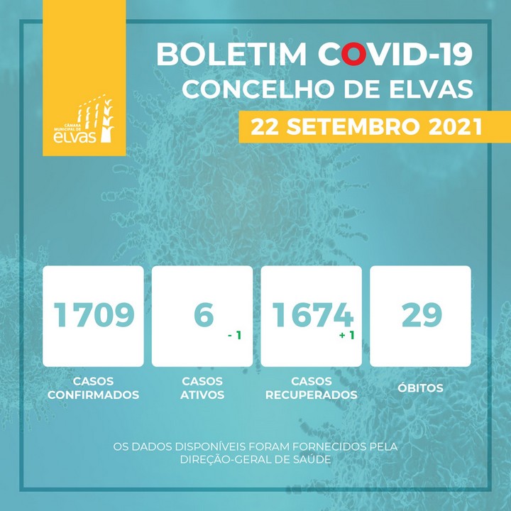 Elvas contabiliza 29 mortes, 1.709 casos de infecção e 1.674 recuperações associadas à covid-19 desde o início da pandemia.