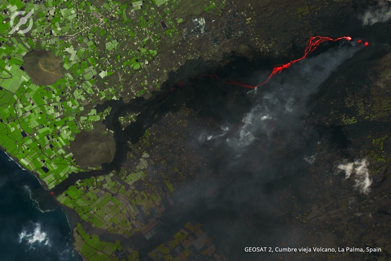 Na quarta-feira, dia 29 de Setembro, foram captadas imagens de satélite com grande detalhe dos rios de lava a chegar ao mar.