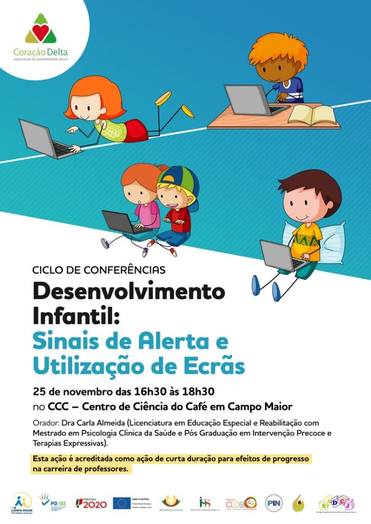 O Centro de Ciência do Café, em Campo Maior, recebe esta quinta-feira 25 de novembro, às 16h30, uma conferência sobre “Sinais de Alerta e Utilização de Ecrãs”.