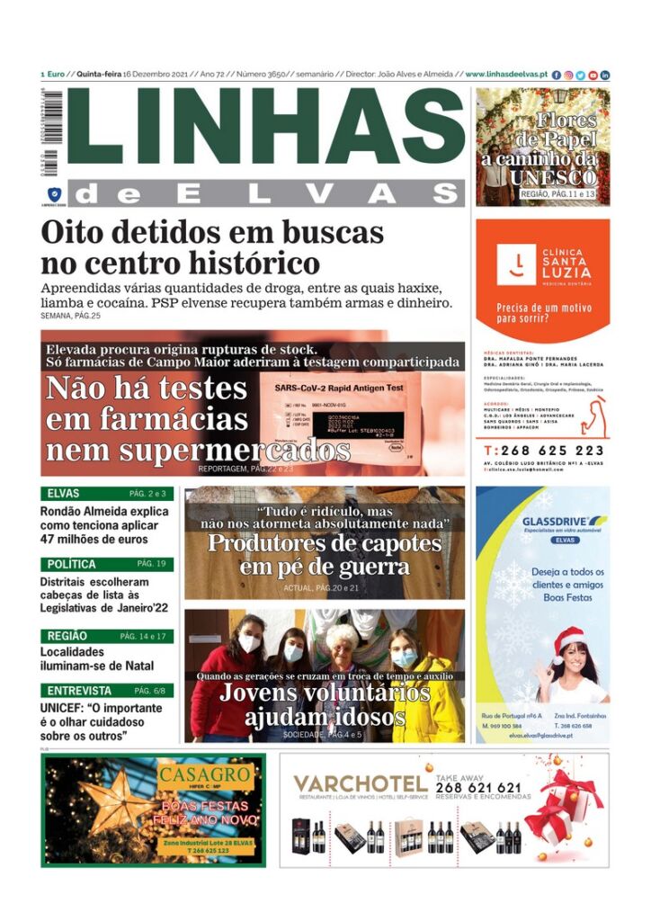 Conheça os títulos da edição de hoje do semanário Linhas de Elvas. Outros temas para ler nas páginas impressas.