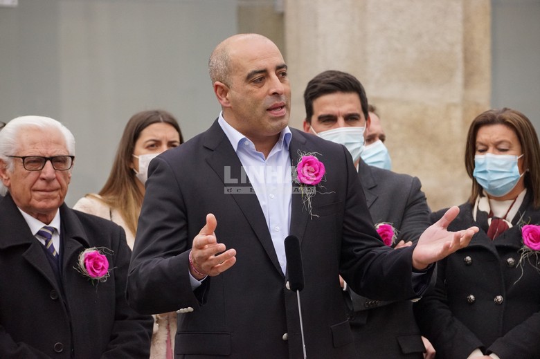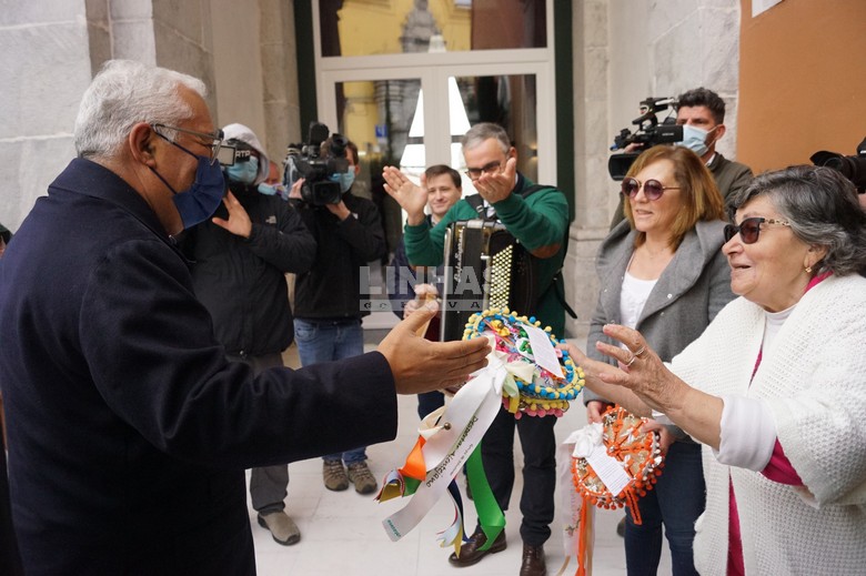 À chegada, o candidato socialista nas legislativas de 30 de Janeiro foi recebido por um grupo de pessoas que cantaram as saias e distribuíram flores de papel, em alusão à recente classificação das Festas do Povo enquanto património cultural imaterial da Unesco.