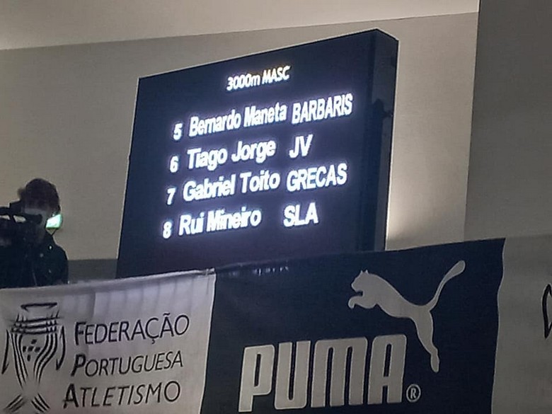 Já hoje, domingo, Bernardo Maneta correu na prova de 3.000 metros em Pista coberta, com um tempo de 09:30:40 e uma média de 3:10/km, estabelecendo assim mais um recorde distrital nesta distância e nos escalões de Juvenis e Juniores.