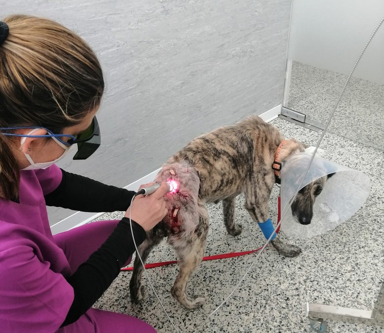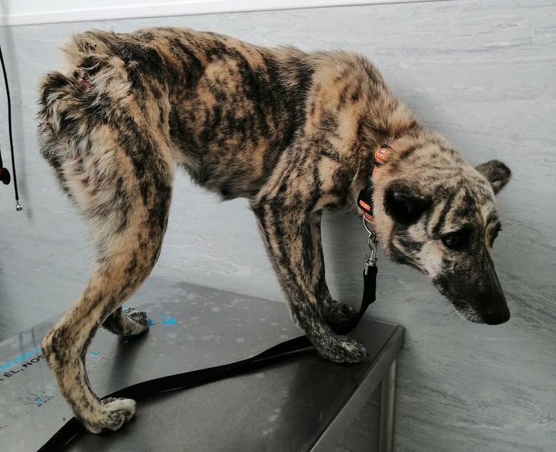 “Orelhas e cauda amputadas, cheia de pulgas, magreza extrema, trazia um buraco em carne viva cheio de pus em que se via o osso da ponta da coluna que liga ao osso da cauda, este osso estava necrosado, o que devia, pela aparência, andar assim há já algum tempo”, descreveu a associação na sua página de Facebook.