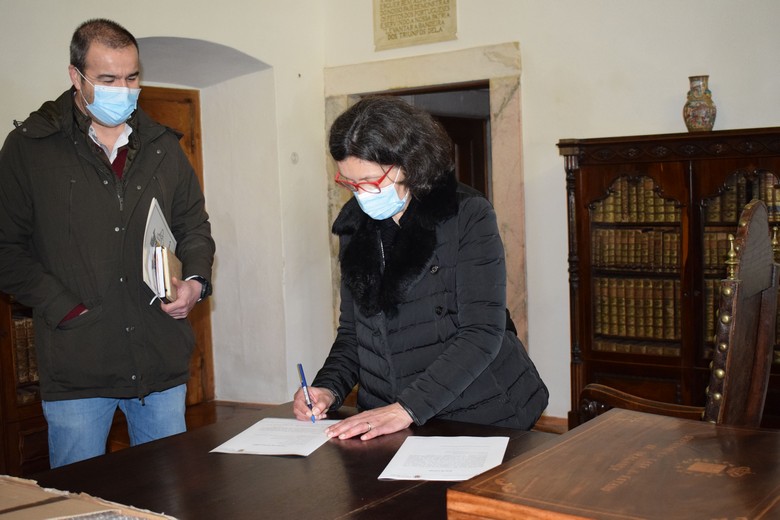 O executivo municipal de Vila Viçosa representado pelo vice-presidente, Tiago Salgueiro, e pela vereadora, Mónica Lobo, procedeu, ontem, dia 17 de Fevereiro, à assinatura do protocolo de cedência temporária e à entrega de uma obra de Henrique Pousão à Fundação da Casa de Bragança, representada pela directora do Museu-Biblioteca da Casa da Bragança, Maria de Jesus Monge.