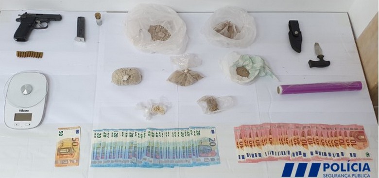 Os polícias apreenderam 5.530 doses de heroína e 95 de cocaína, assim como uma pistola de calibre 7,65 milímetros (mm), 11 munições do mesmo calibre, um cartucho de calibre 12 GA e uma faca com a configuração de arma branca da classe A (Skinner).