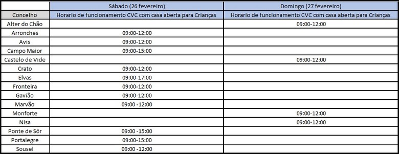 Segundo a Unidade Local de Saúde do Norte Alentejano (ULSNA), haverá vacinação nos seguintes concelhos e horários:
