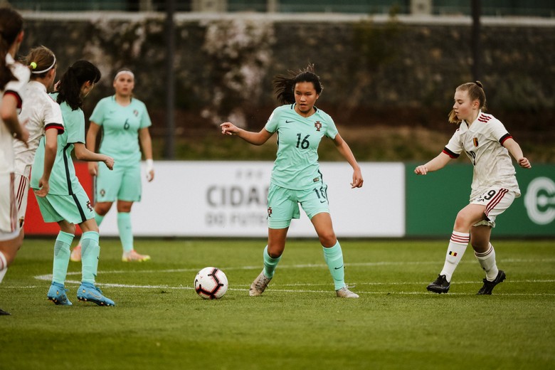 A jovem, que já tinha sido chamada por duas vezes pelo treinador nacional, Ricardo Tavares, para dois estágios de preparação, integrou o onze inicial da equipa das Quinas e jogou durante 59 minutos no primeiro encontro entre Portugal e Bélgica, que terminou com uma vitória por uma bola a zero.