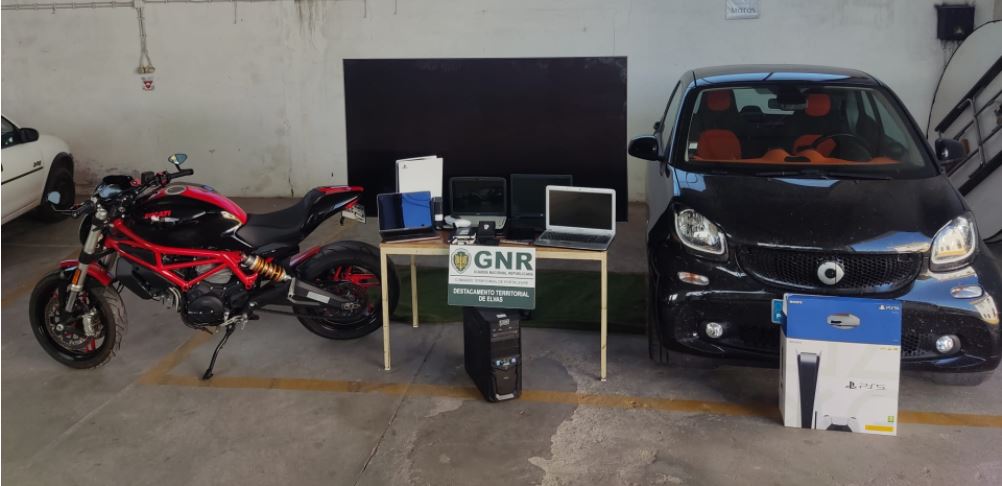 As buscas permitiram apreender uma viatura, um motociclo, três computadores portáteis, três telemóveis, 11 dispositivos de armazenamento (USB), uma televisão, documentação diversa e identificação de carteiras de cripto moedas.