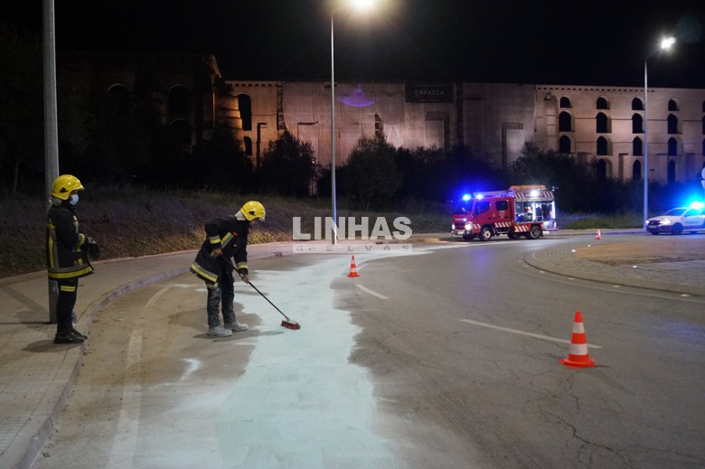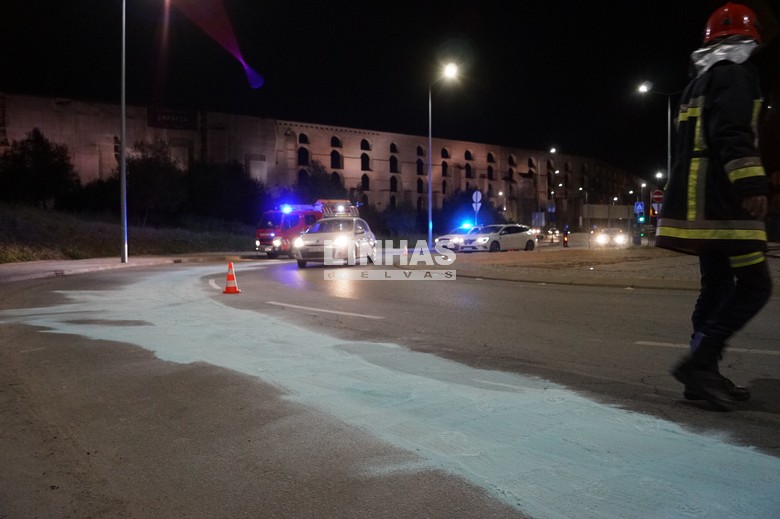 Os bombeiros de Elvas estão a limpar, desde as 19:30 de hoje, combustível derramado por uma viatura desconhecida ao longo de vários quilómetros da Avenida de Badajoz, uma das principais vias de acesso ao centro histórico e bairros da cidade.