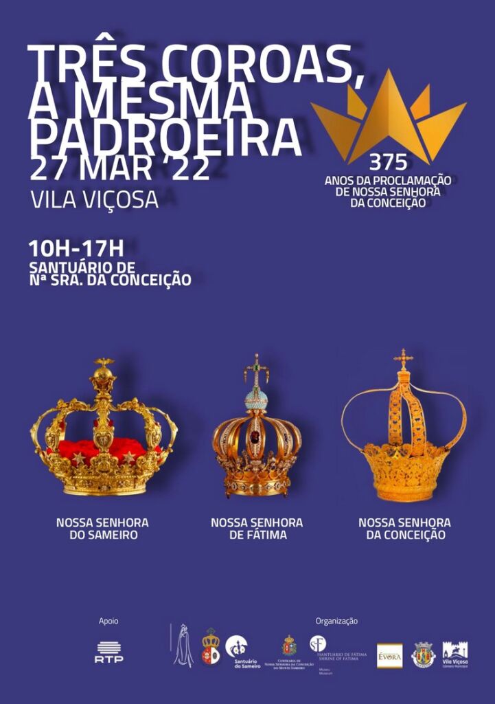Neste contexto, o Município informa que, integrada nas referidas celebrações, estará disponível a exposição “Três Coroas, a mesma padroeira”, no dia 27 de Março, entre as 10 e as 17 horas, e a qual irá decorrer no Santuário de Nossa Senhora da Conceição de Vila Viçosa.