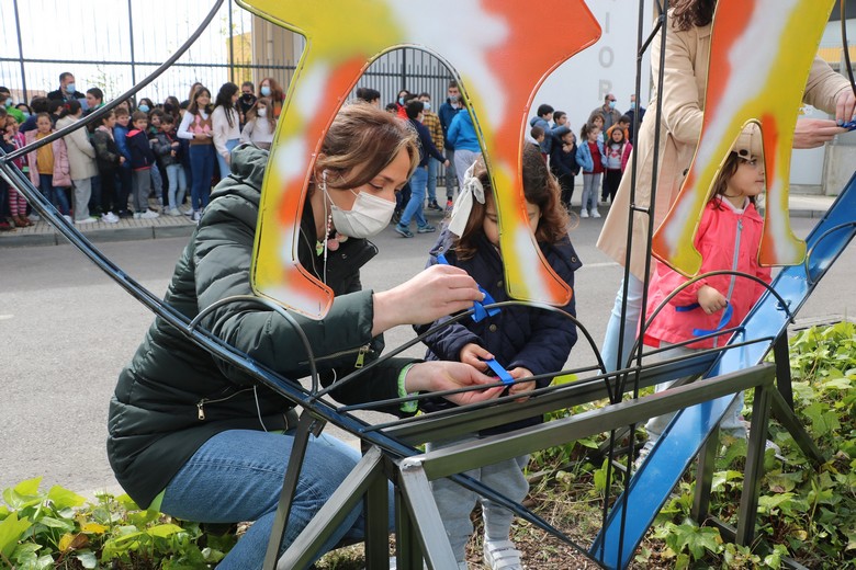 Intitulada “Serei o que me deres… que seja amor”, a instalação foi adornada com laços azuis colocados pelos alunos e professores do concelho.