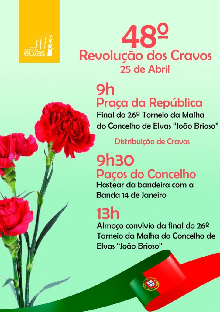 A efeméride vai ser assinalada com a entrega de cravos a toda a população, flor que simboliza a Revolução da Liberdade.