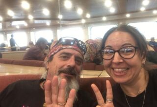Ricardo Palacios e a mulher, Sandra Duraho Serrano, de visita ao acampamento de Avis, a 14… -