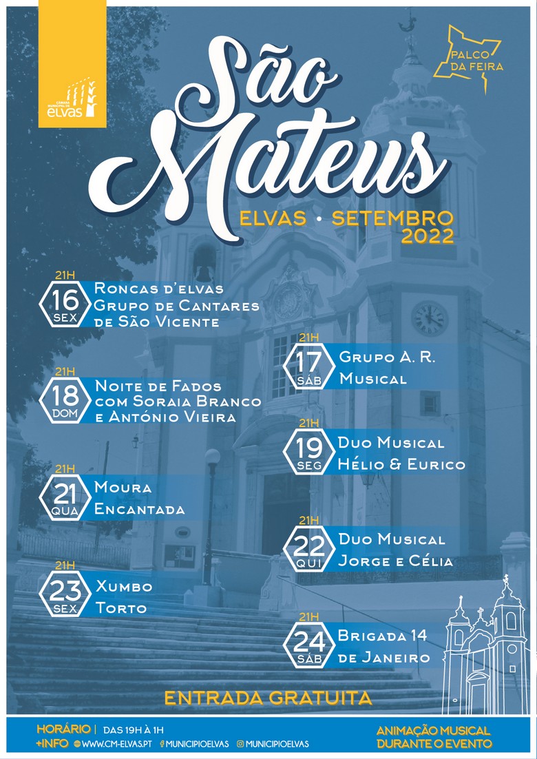 A Câmara Municipal de Elvas voltou, este ano, a organizar a animação das Festas em honra do Senhor Jesus da Piedade, nomeadamente a Expo São Mateus que decorre de 16 a 25 de Setembro.