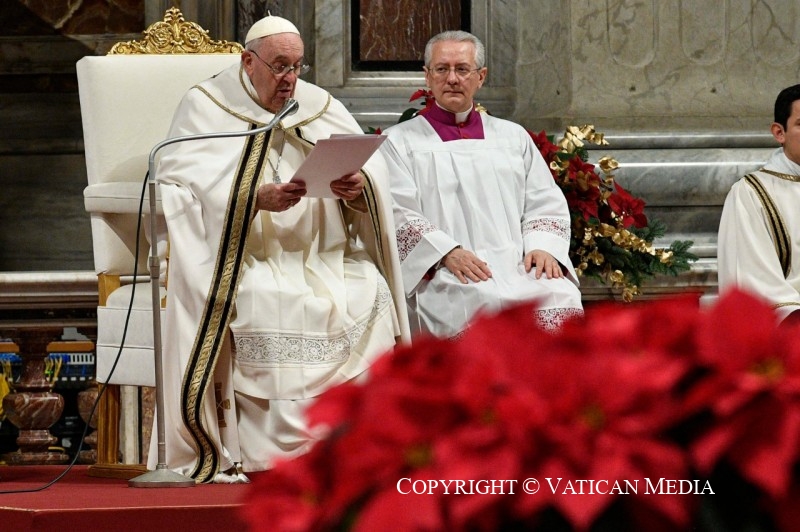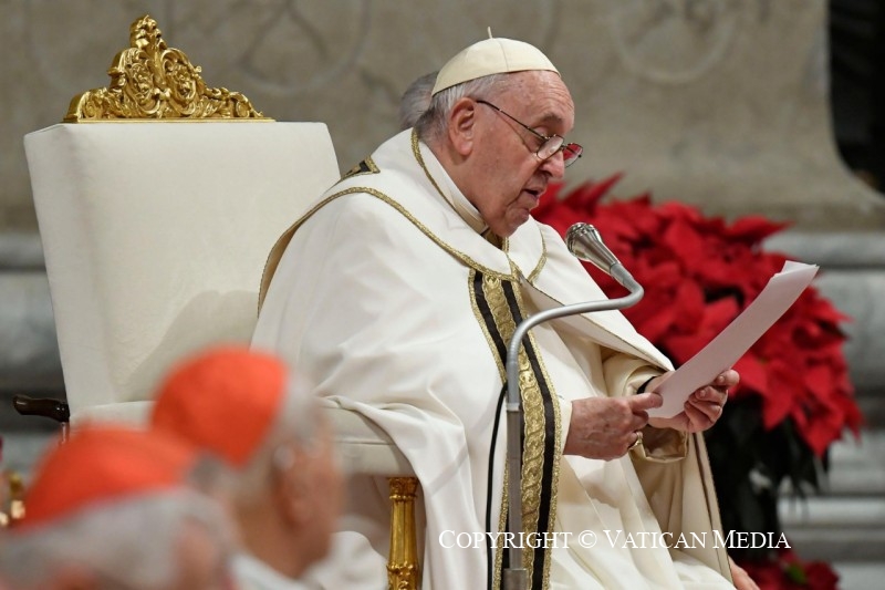 O Papa leu a homília sentado e explicou as três palavras que disse que podem inspirar o presépio: “a proximidade, a pobreza e o concreto”.