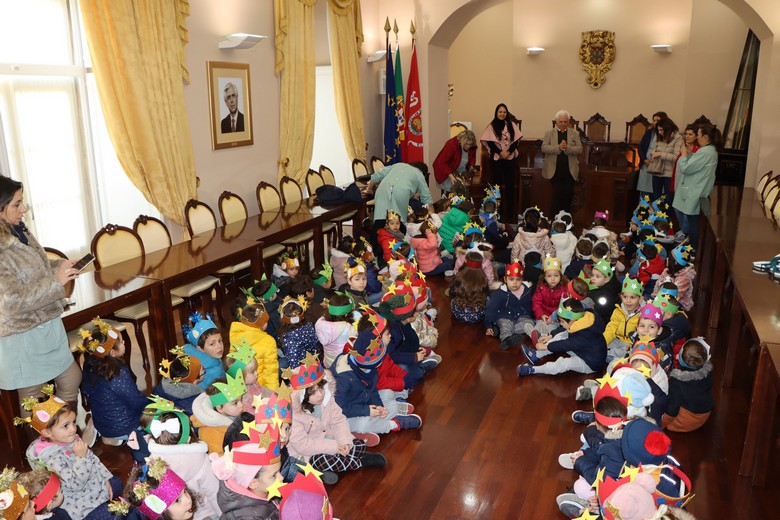 As crianças do Semi-Internato de Nossa Senhora da Encarnação estiveram sexta-feira, 6 de Janeiro, no Salão Nobre dos Paços do Concelho para comemorar o Dia de Reis.