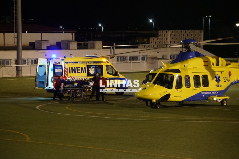 Depois de ter sido assistido, numa primeira instância, no Hospital de Santa Luzia, em Elvas, o ferido grave foi transferido de helicóptero para Lisboa.