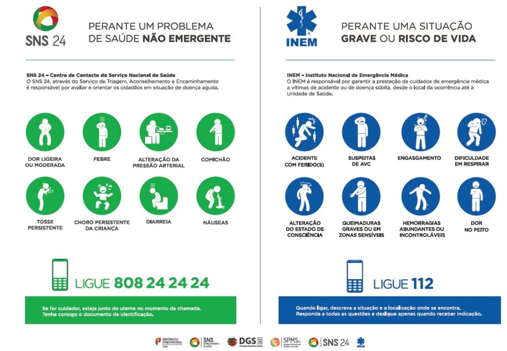 Deve ligar para o SNS 24 – 808 24 24 24 – perante um problema de saúde não emergente. O SNS 24 através do Serviço de Triagem, Aconselhamento e Encaminhamento é responsável por avaliar e orientar os cidadãos em situação de doença aguda.