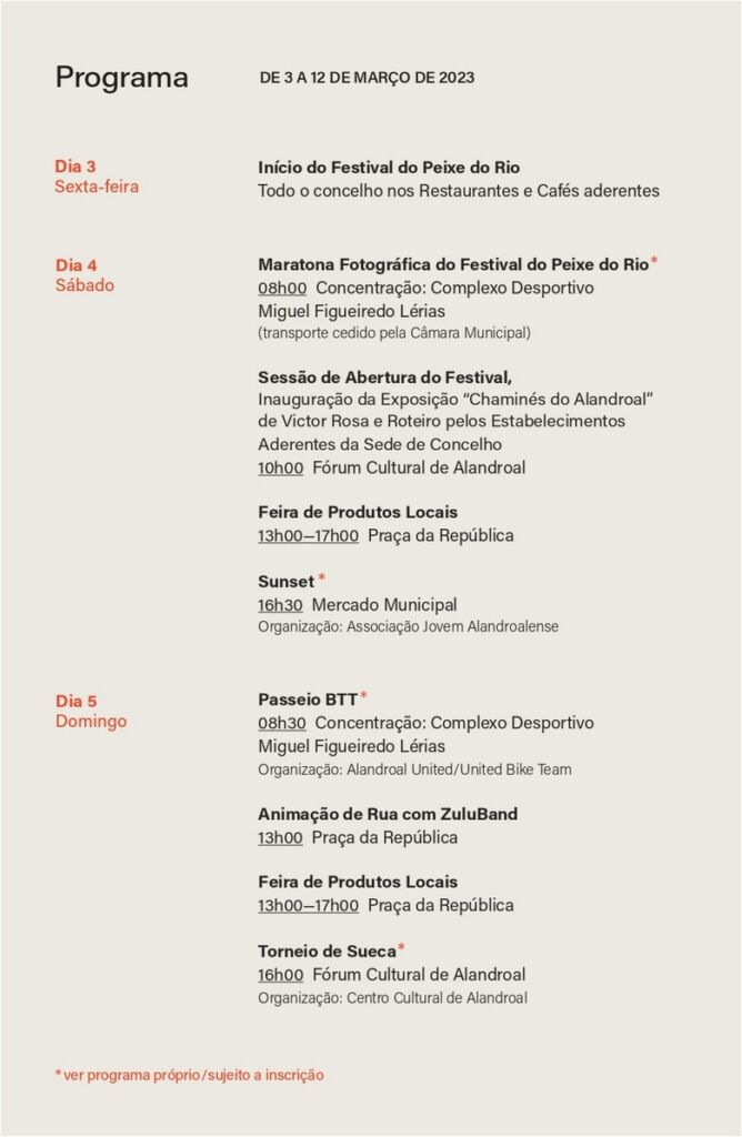O concelho de Alandroal vai acolher, entre os dias 3 e 12 de Março, o Festival do Peixe do Rio.
