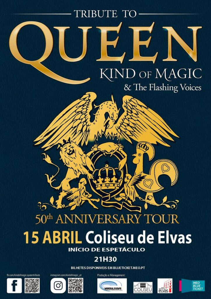 Os Kind of Magic & The Flashing Voices, uma banda que reproduz em palco a sinfonia dos clássicos da banda britânica Queen, vão dar um concerto em Elvas, a 15 de Abril, no Coliseu, pelas 21h30.