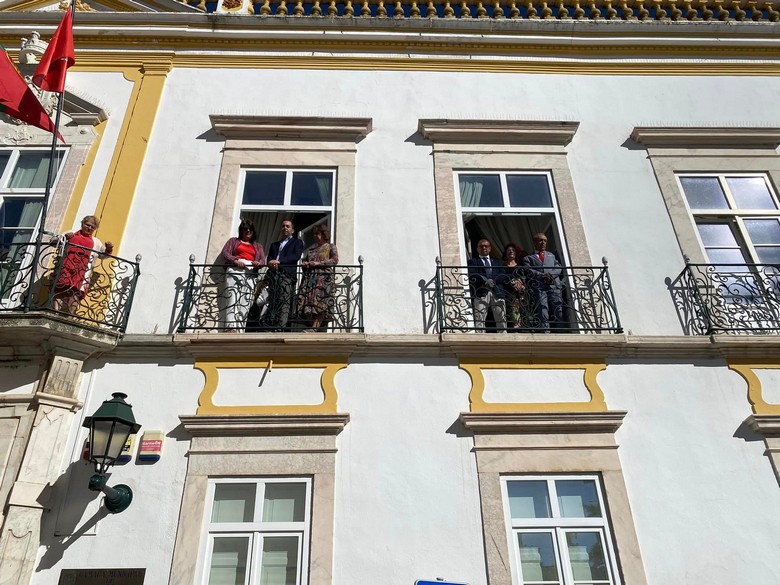 Ao som do Hino Nacional pela Banda 14 de Janeiro, o presidente da Câmara Municipal, José Rondão Almeida, e as vereadoras Vitória Branco e Paula Calado hastearam as bandeiras Nacional, do Município e da União Europeia, respectivamente.