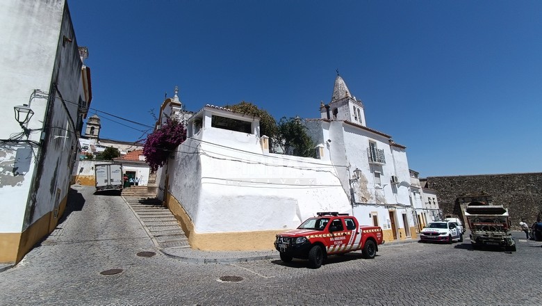 No local está a PSP e os Bombeiros Voluntários de Elvas, que tentam encontrar a melhor solução para resolver este episódio insólito. A seguradora da viatura também se encontra ao corrente.