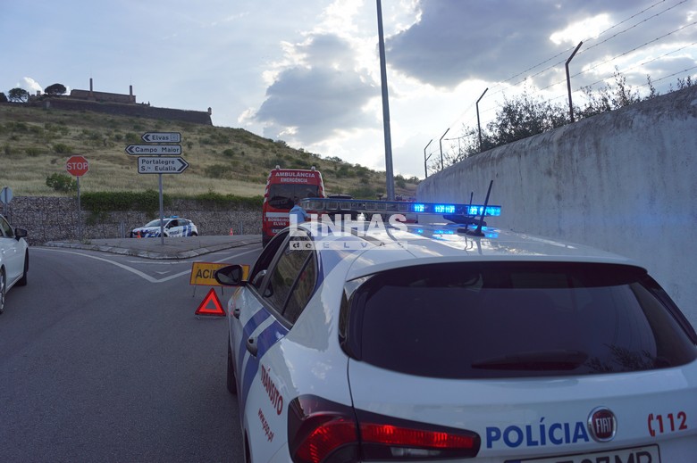 Uma pessoa sofreu ferimentos leves na sequência de uma colisão rodoviária entre um veículo ligeiro de passageiros e um motociclo no cruzamento da Rua do Matadouro, no Bairro da Boa-Fé, em Elvas.