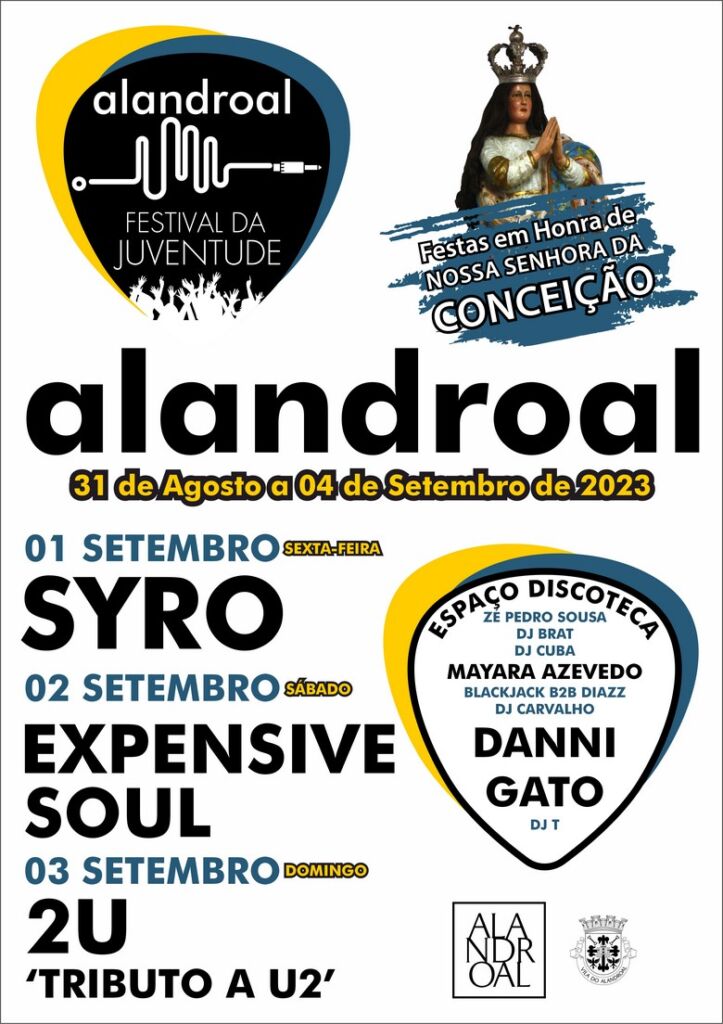 O Município de Alandroal divulgou o cartaz de 2023 do Festival da Juventude e das Festas em Honra de Nossa Senhora da Conceição, que se realizam entre 31 de Agosto e 4 de Setembro.