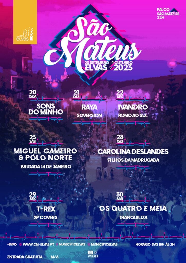 Este ano os cabeças de cartaz, no Palco São Mateus, são os Sons do Minho (20); RAYA (21) Ivandro (22), Miguel Gameiro & Pólo Norte (23), Carolina Deslandes (28), T-Rex (29) e Os Quatro e Meia (30). Pelo palco, a abrir os concertos vão estar: Soversion (21), Rumo ao Sul e convidados (22), Brigada 14 de Janeiro (23), Filhos da Madrugada (28), XP Covers (29) e Tranquiliza (30). Os concertos iniciam-se pelas 22h00.