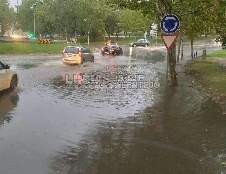 Também na rotunda do Tribunal uma das faixas de rodagem ficou inundada de água fruto do escoamento deficiente da sarjeta naquele troço.