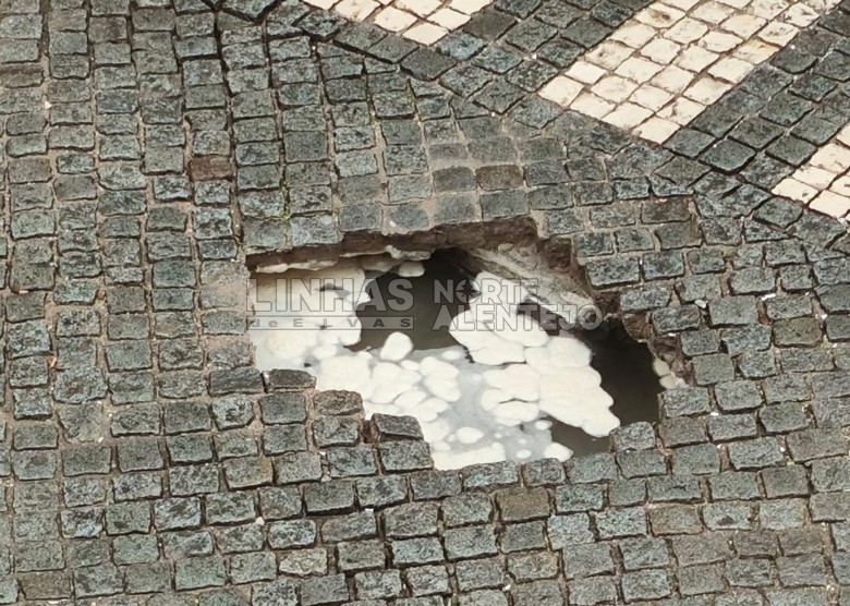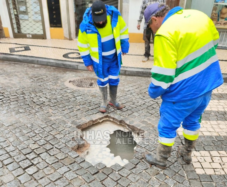 O pavimento abateu num acesso da Rua da Carreira com a Rua da Cadeia, no centro histórico de Elvas, formando-se um buraco de algumas dimensões que condiciona a circulação automóvel.
