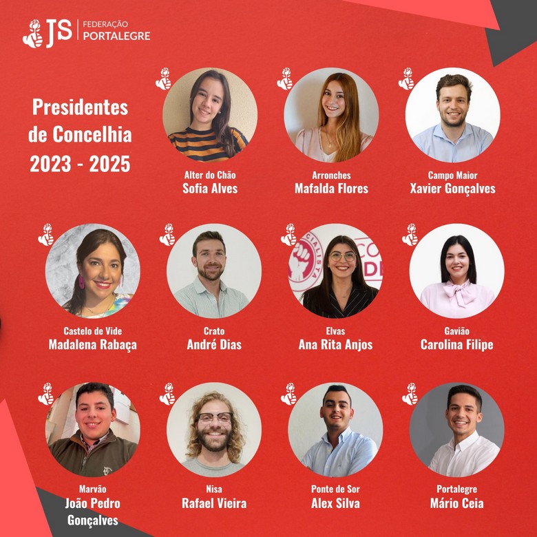 Foram também eleitas as concelhias de Campo Maior (Xavier Gonçalves), Castelo de Vide (Madalena Rabaça), Crato (André Dias), Elvas (Ana Rita Anjos), Gavião (Carolina Filipe), Nisa (Rafael Vieira), Ponte de Sor (Alex Silva) e Portalegre (Mário Ceia).