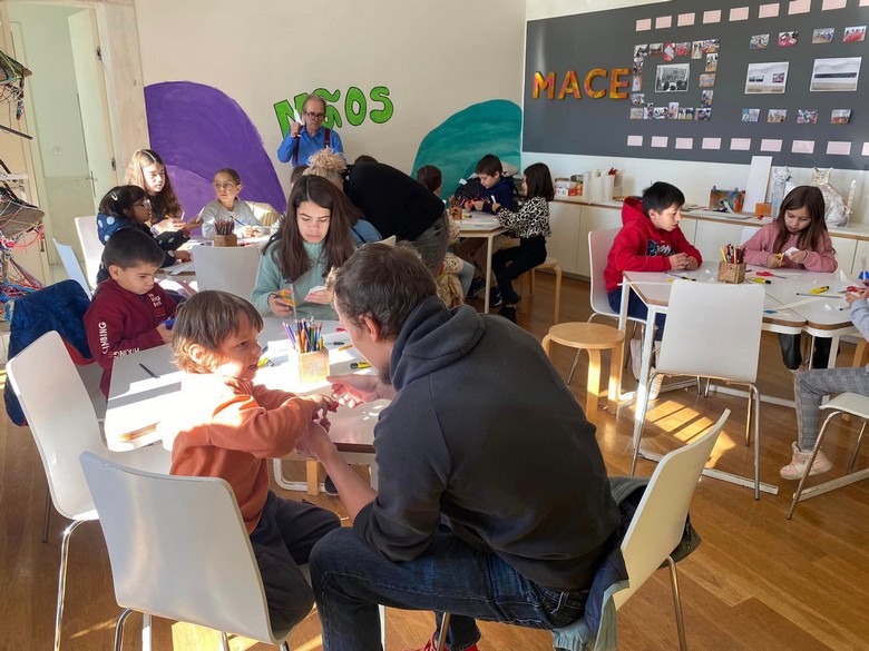 “Arquitetura para todos” é o tema do workshop conduzido pelo arquiteto e professor José Kuski Vieira, que junta durante a manhã dezena e meia de crianças dos 7 aos 13 anos no espaço do Serviço Educativo do MACE.