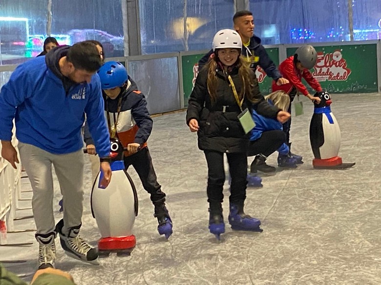 A grande novidade desta edição 2023 é a pista de gelo instalada no tabuleiro central da praça.