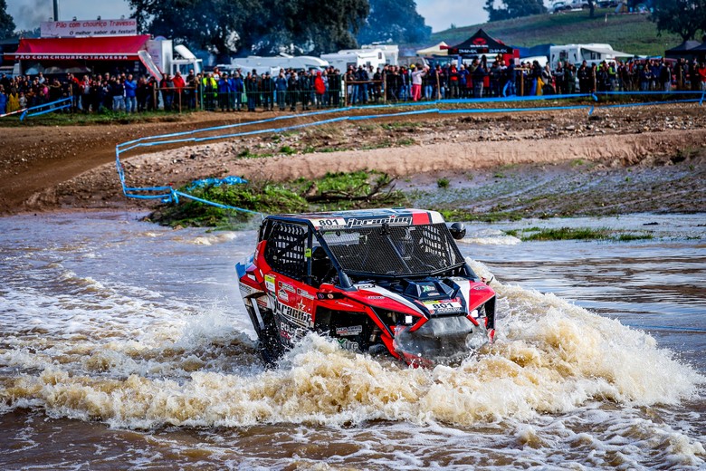Eram 15 horas quando um total de 79 equipas partiram para os 1.440 minutos mais duros e imprevisíveis do todo-o-terreno em Portugal, uma fórmula onde, tradicionalmente, as equipas francófonas são as grandes favoritas à vitória. E a 25.ª edição está a confirmar isso mesmo, pois a formação de Franck Cuisinier, vencedora em 2022, assumiu logo o comando da prova, com o protótipo MMP. O carro francês colocou-se na frente do pelotão, enquanto a equipa Andrade Competition, recordista de vitórias em Fronteira, foi subindo lugares até chegar ao segundo posto, com o novo Proto AC Clio V6. A máquina pilotada por Alexandre Andrade chegou ao final das primeiras duas horas de corrida a mais de quatro minutos dos seus compatriotas. Logo atrás seguia o Can-Am X3 inscrito por outro francês, Jean-Philippe Beziat, equipa que foi segunda classificada em 2022 e onde está o português Marco Pereira.