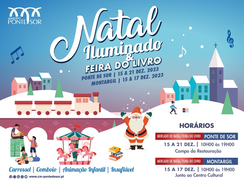 O concelho de Ponte de Sor recebe, a partir do dia 15 de dezembro, o evento “Natal Iluminado”, uma organização do Município de Ponte de Sor que promete trazer muita cor e alegria nesta época natalícia e que consistirá na dinamização de duas atividades, o Mercado de Natal e a Feira do Livro.