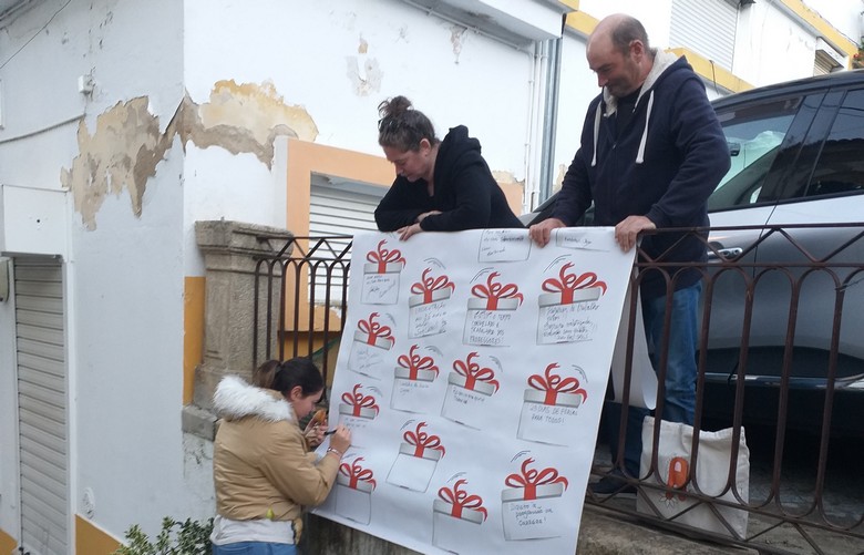 A iniciativa consistiu “numa enorme faixa em que estavam pintados uma árvore de Natal e presentes”, sendo que “os activistas sindicais desafiavam quem passava que escrevesse aquilo que iria pedir ao seu patrão neste Natal”.