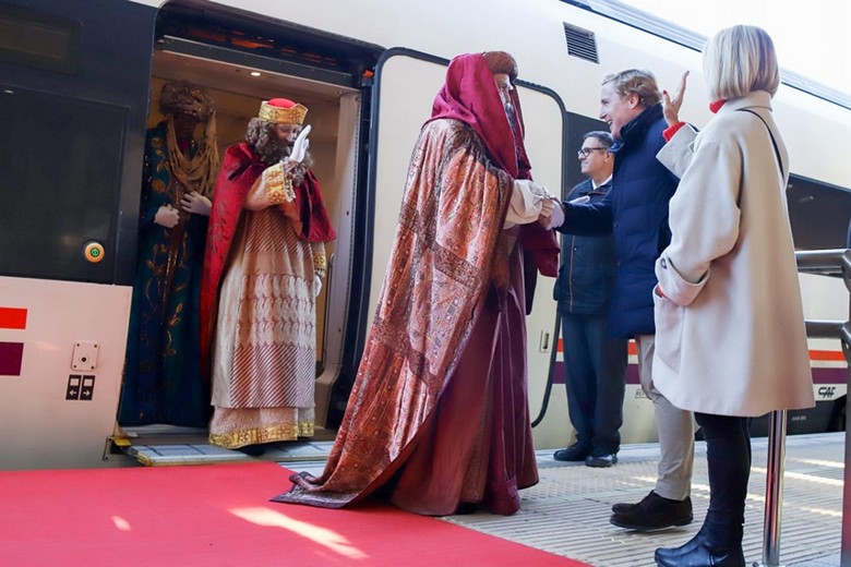 Os reis magos Melchior, Gaspar e Baltazar, que integram o percurso, chegam momentos antes a Badajoz de comboio.