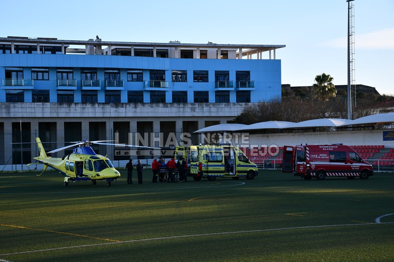 A vítima foi transportada em ambulância até ao campo Pedro Barrena, do Estádio Municipal de Elvas, onde o helicóptero do INEM aterrou pouco depois das 16 horas. Cerca de 45 minutos depois, após estabilização da vítima pelas equipas de emergência médica da SIV de Elvas, do INEM e com o auxiliado dos bombeiros, o homem foi estabilizado e seguiu com a tripulação do INEM para o Hospital de Évora.